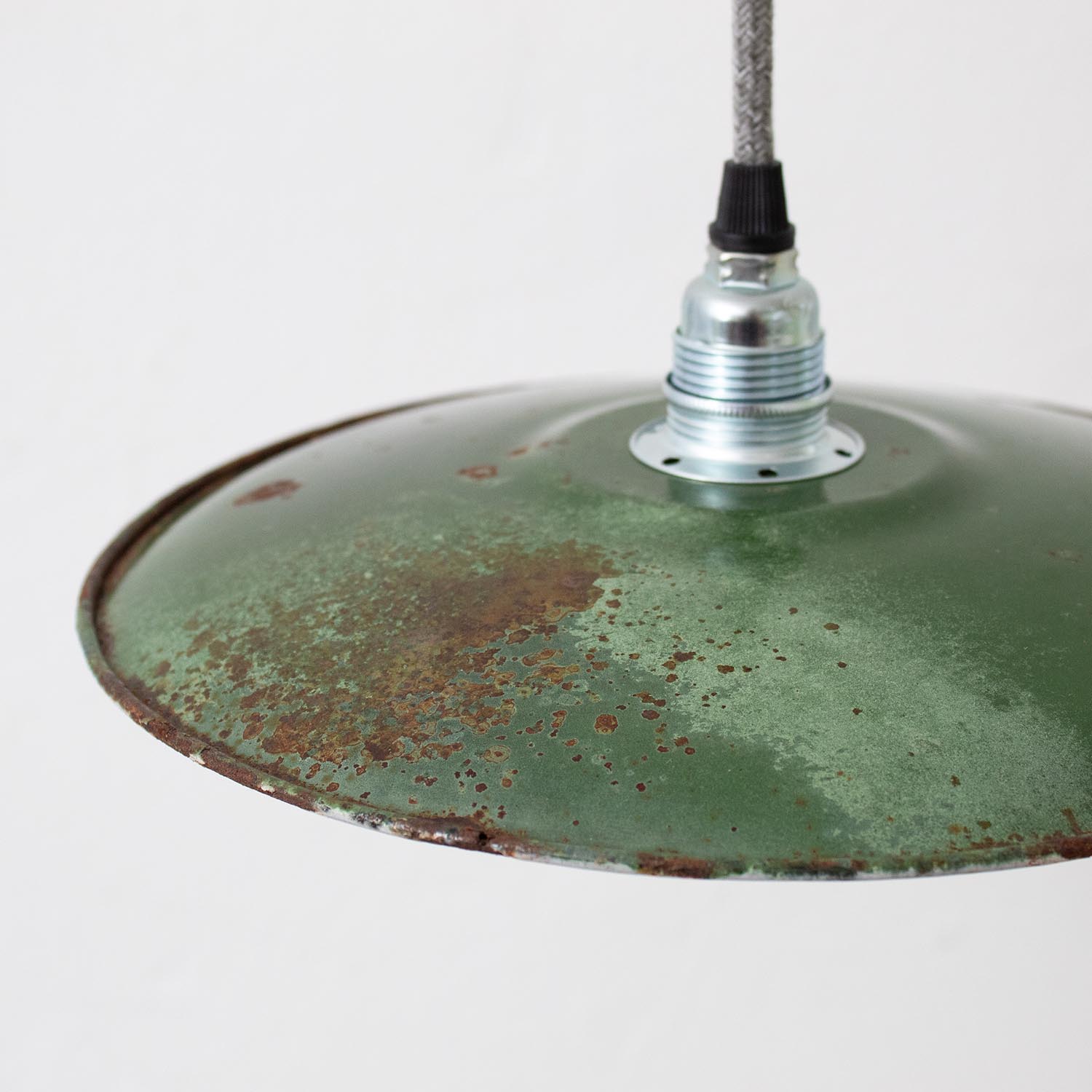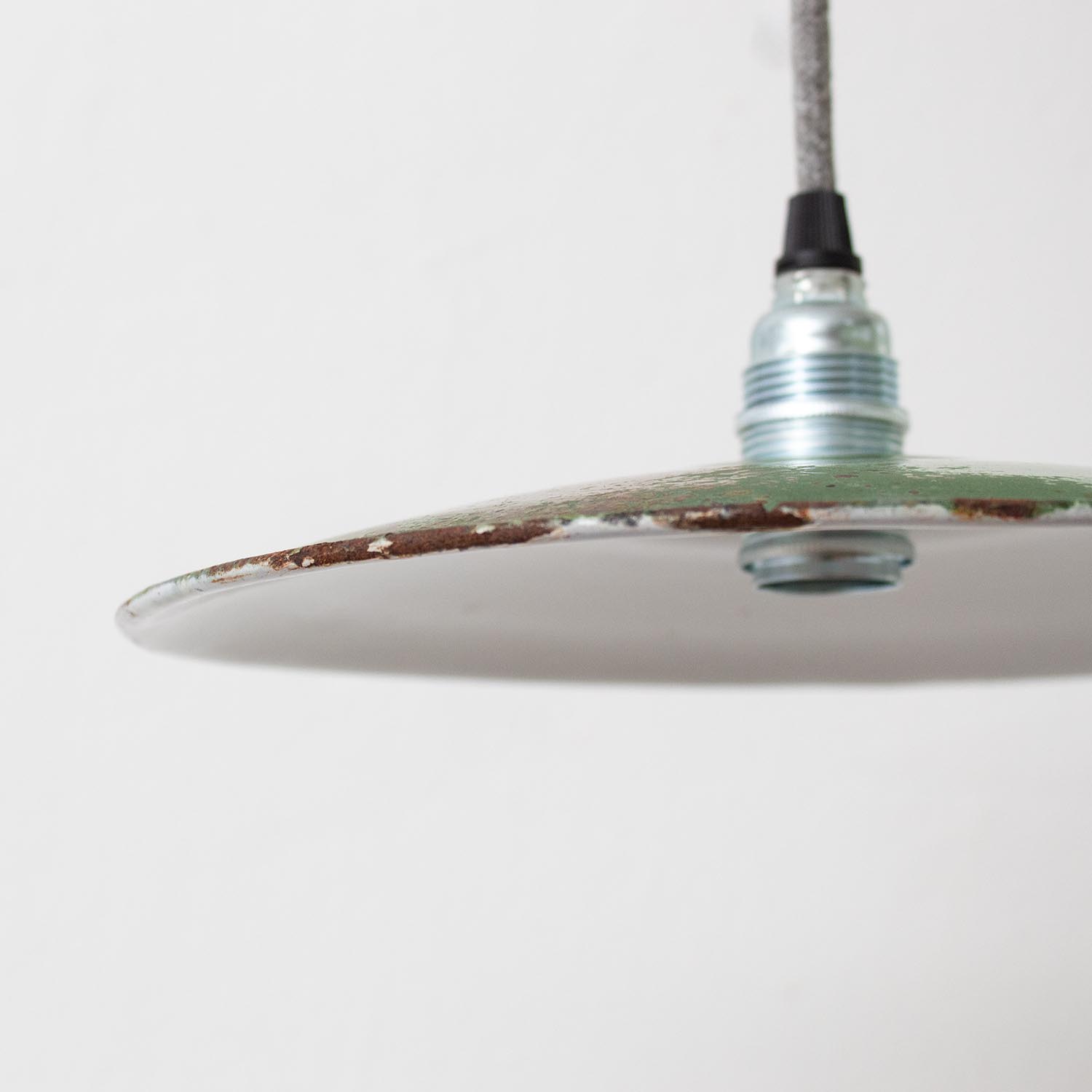Produktinformationen "Flache grüne Emaille Hängelampe Ø 24 cm mit Patina aus Frankreich"