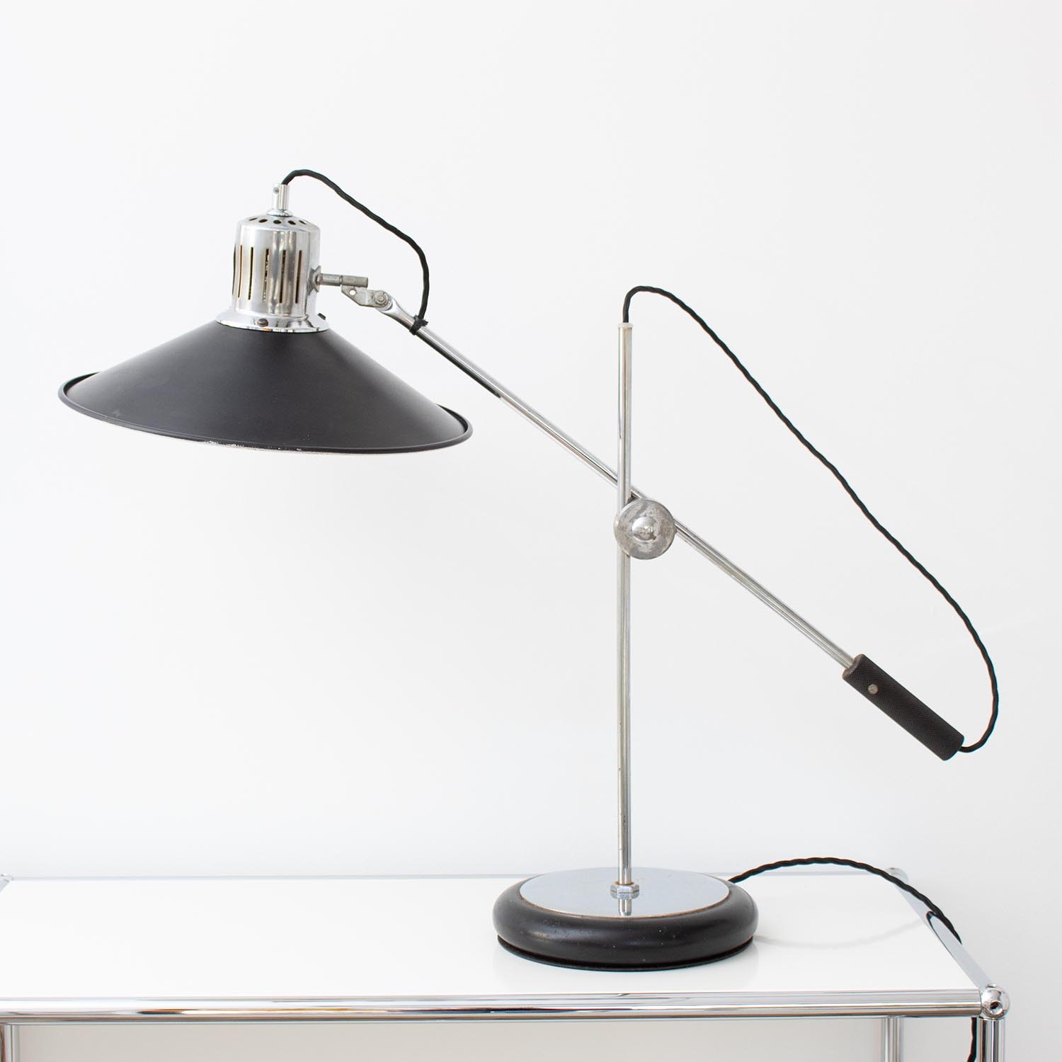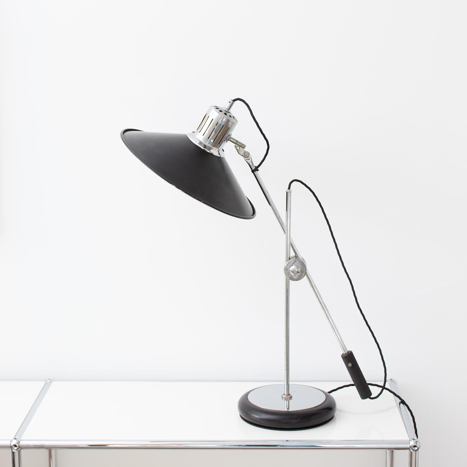 Produktinformationen "Große Aluminor Architektenlampe Tischlampe Schwarz/Chrom 1970er"