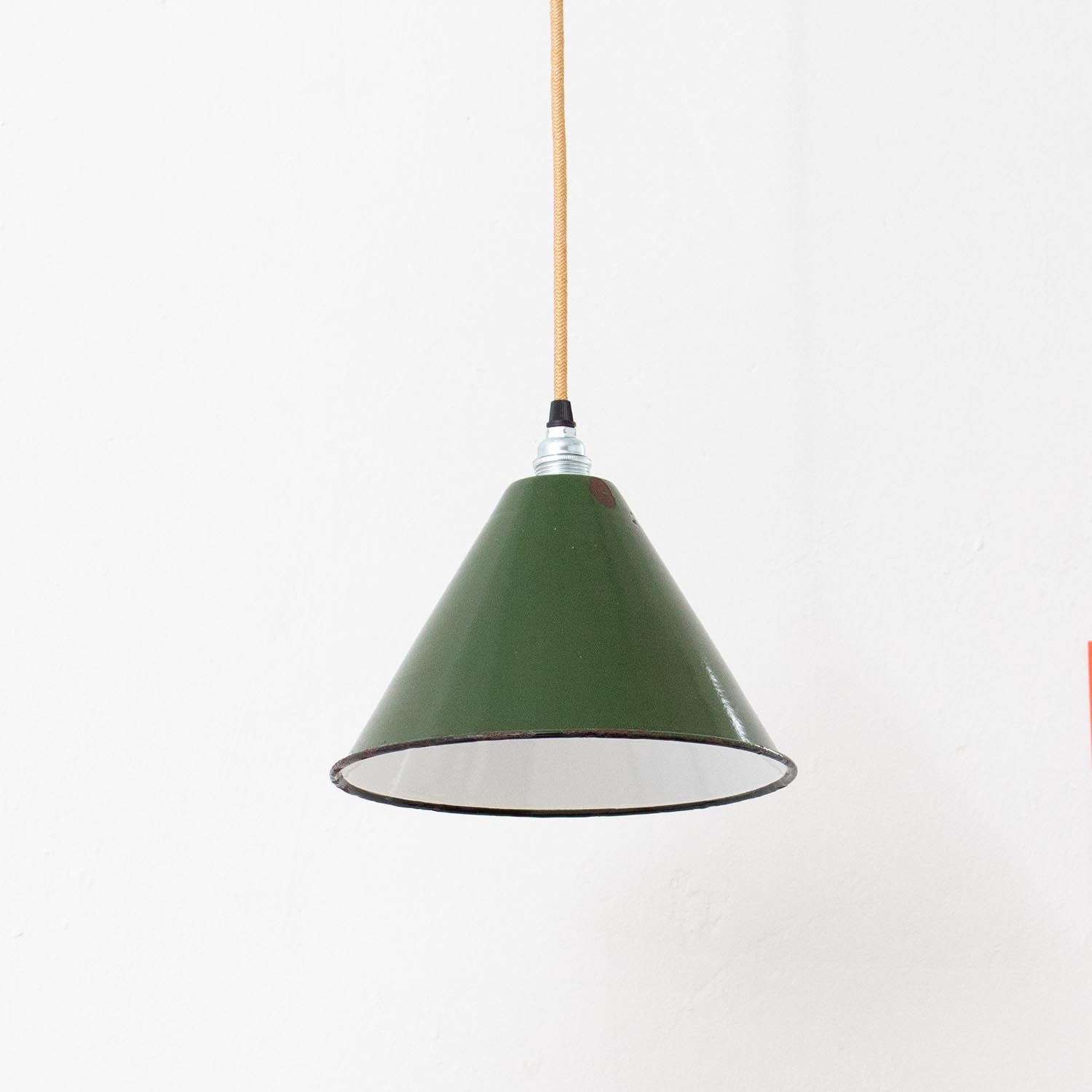 Produktinformationen "Konische vintage Emaille Hängelampe Grün Ø 24 cm aus Frankreich"