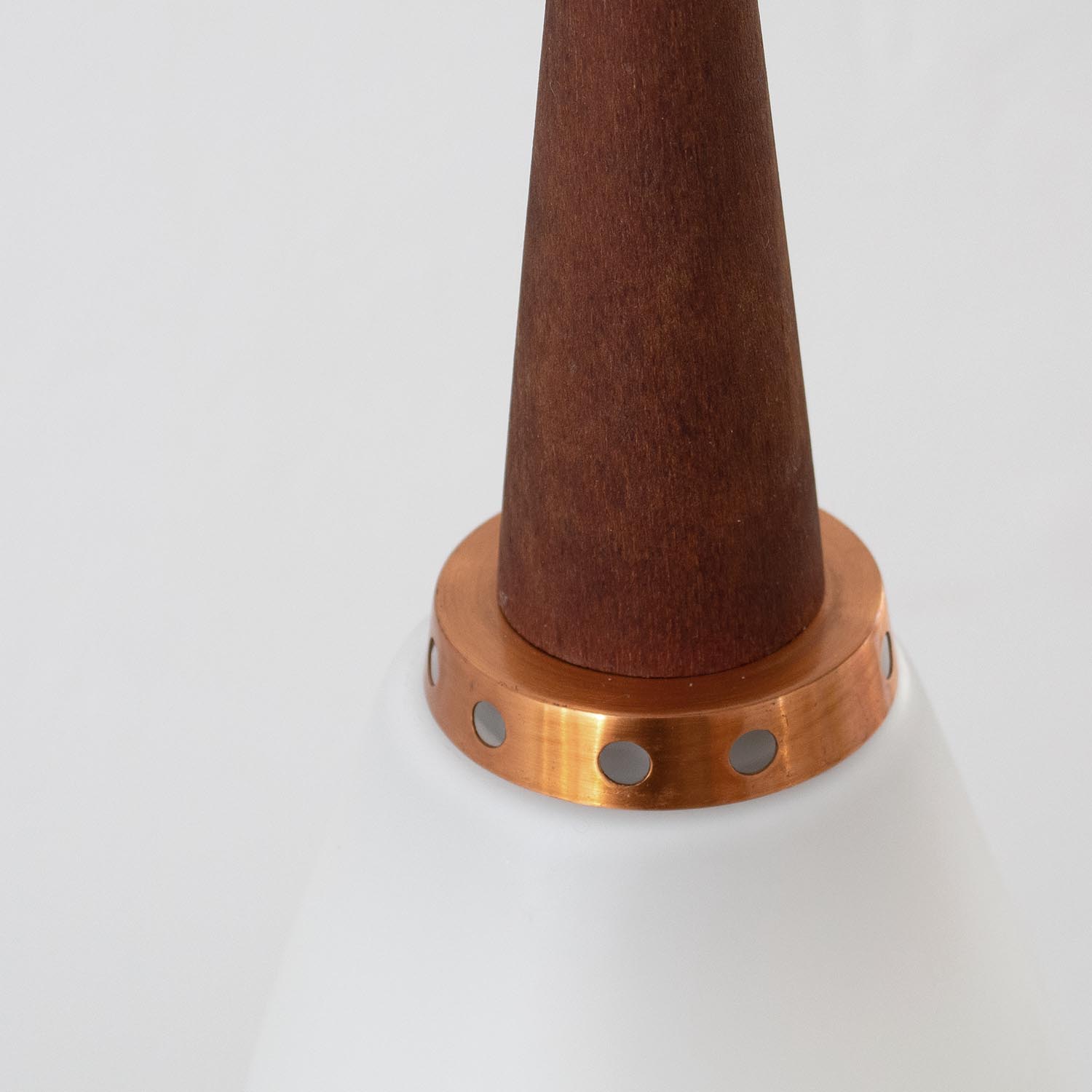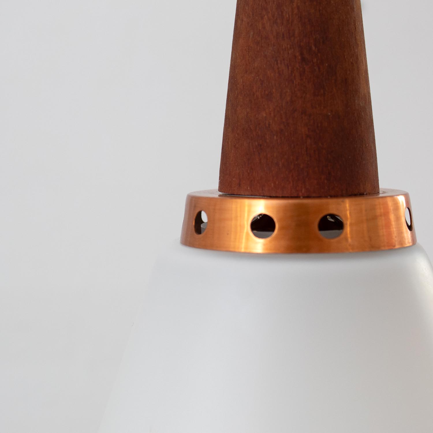 Produktinformationen "Mid Century Lichtspiel Hängelampe Opalglas / Kupfer / Teak Ø 14 cm"