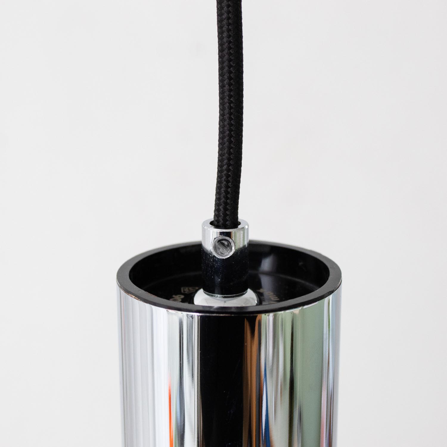 Vintage Spot-Pendelleuchte aus der Mitte des letzten Jahrhunderts. Cooles Space Age Design in Chrom und Metall. Liebevoll restauriert schmücken diese Vintage-Lampen jetzt Küchentheken und Esszimmer, Flure und Wohnzimmer, Kinder- und Arbeitszimmer.