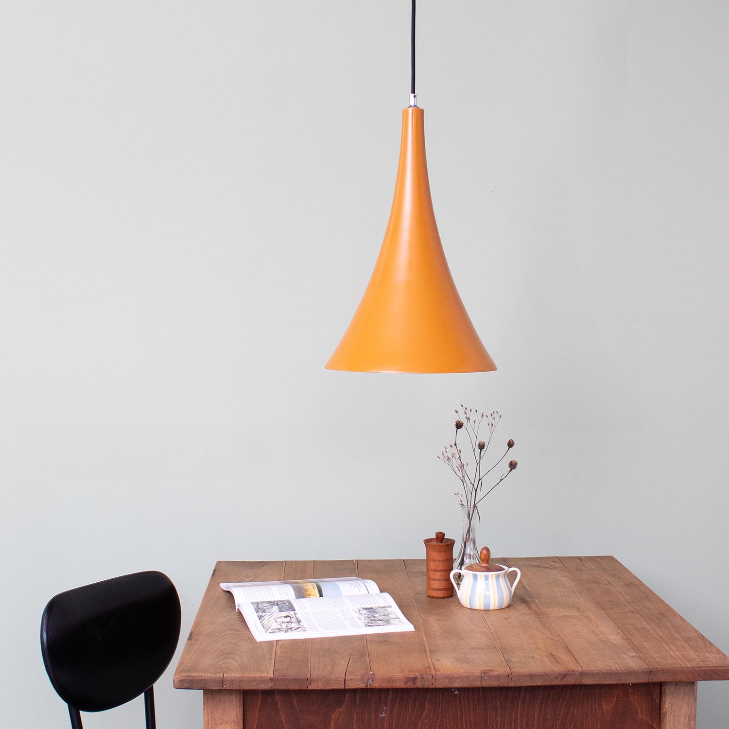 Produktinformationen "Midcentury senfgelbe-orange "Tulip" Metall Hängelampe ø 28 cm"