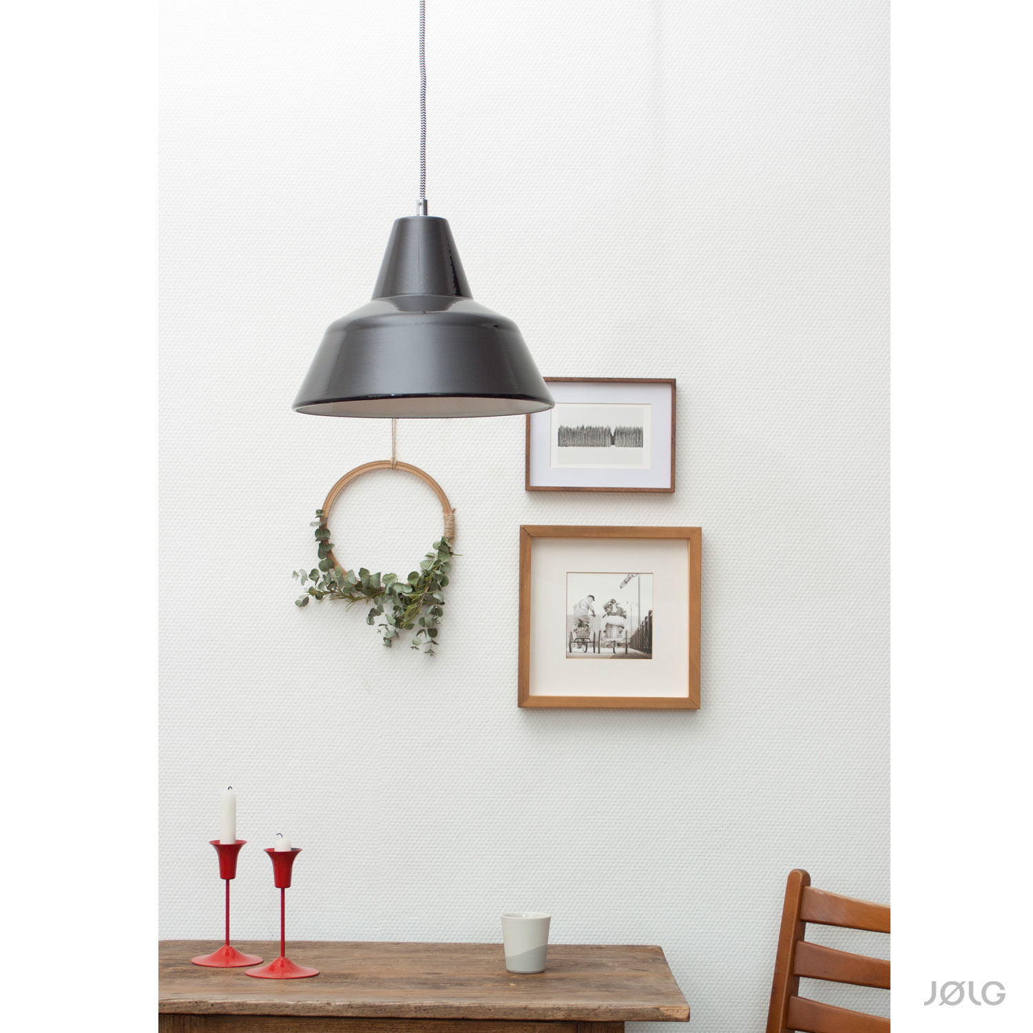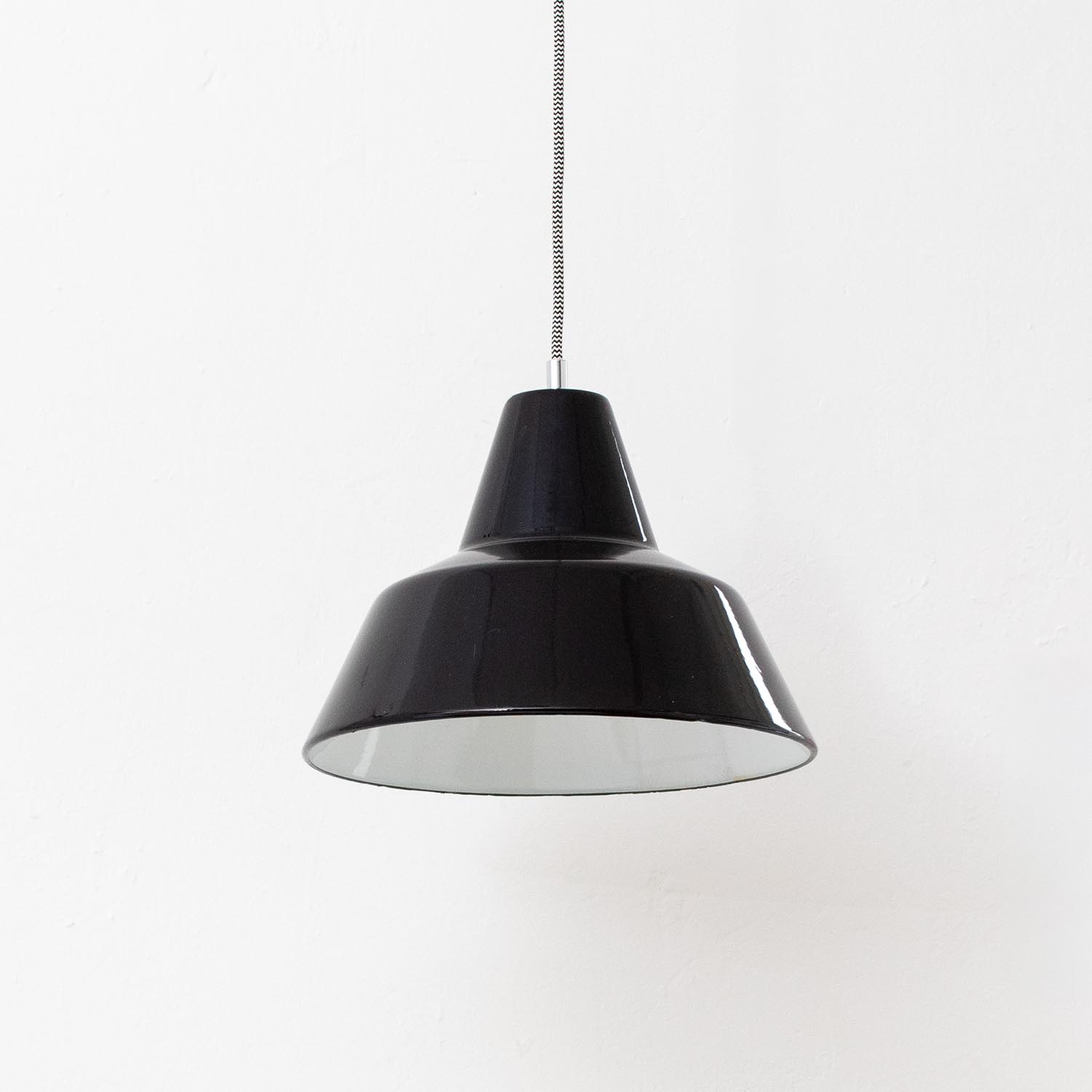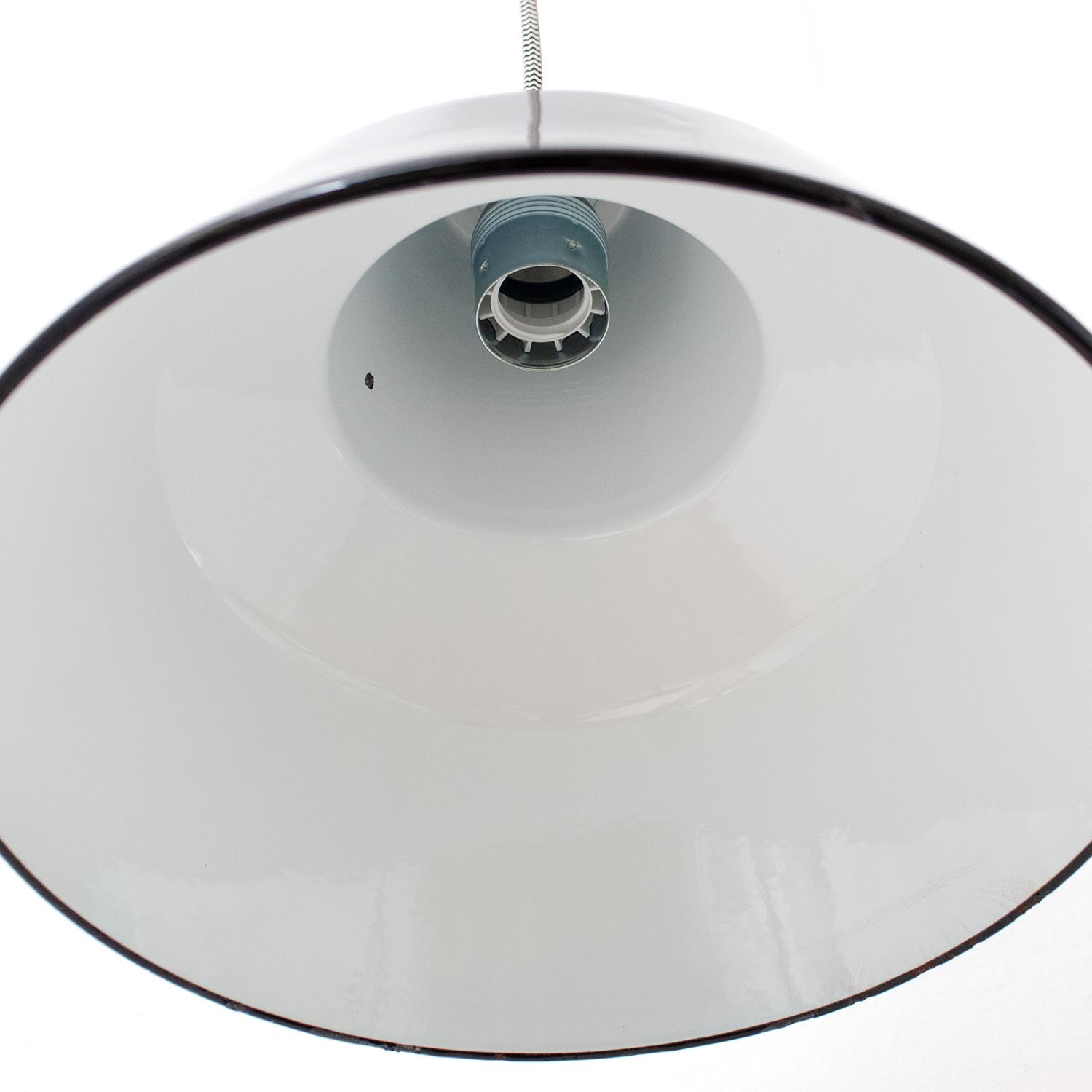 Deine einzigartige Industrie-Hängelampe hat eine klare skandinavische Form, die hier auf eine Oberfläche mit Geschichte trifft.