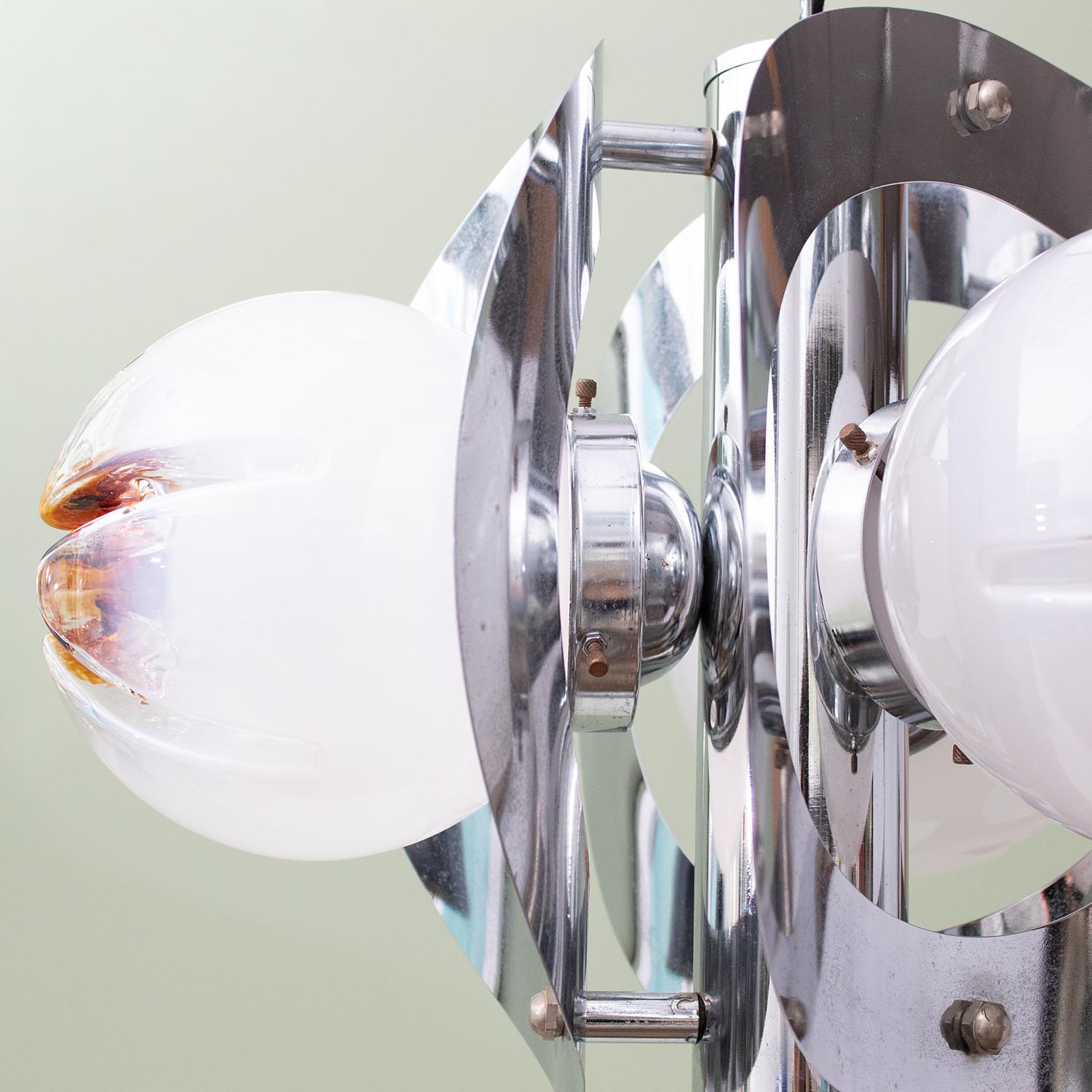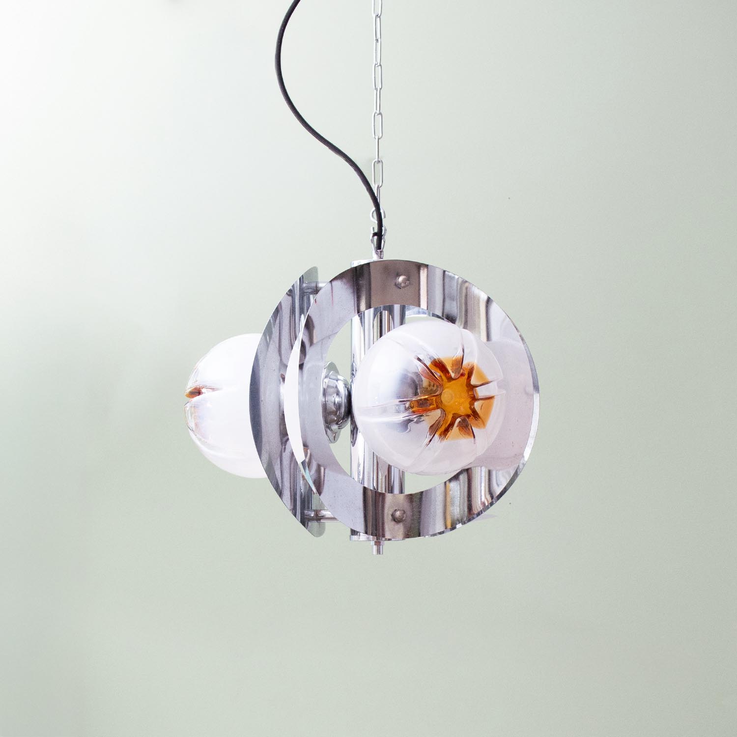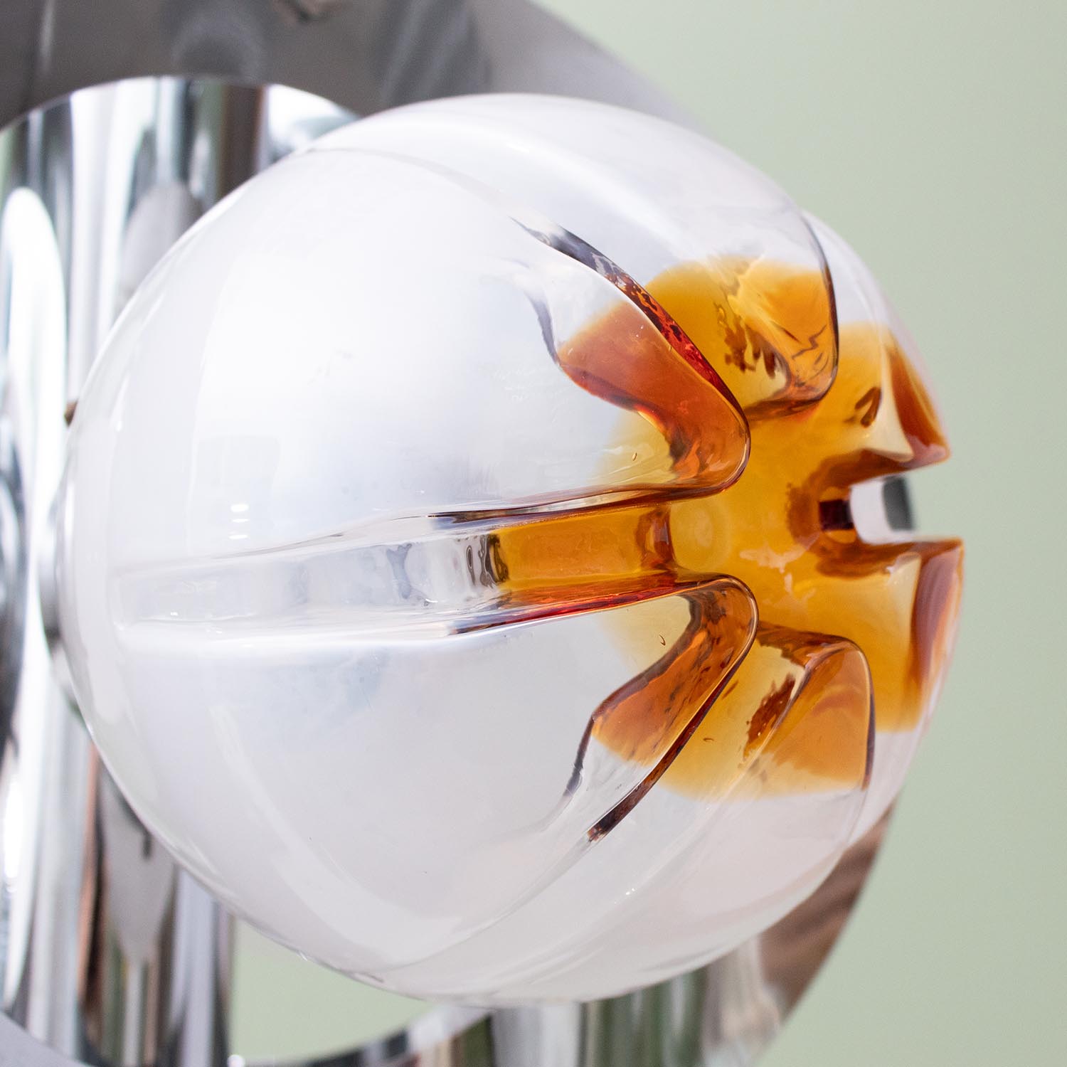 Produktinformationen "Stolzer midcentury 3-flammiger Murano Mezzega Glaskugel Leuchter Ø 38 cm"