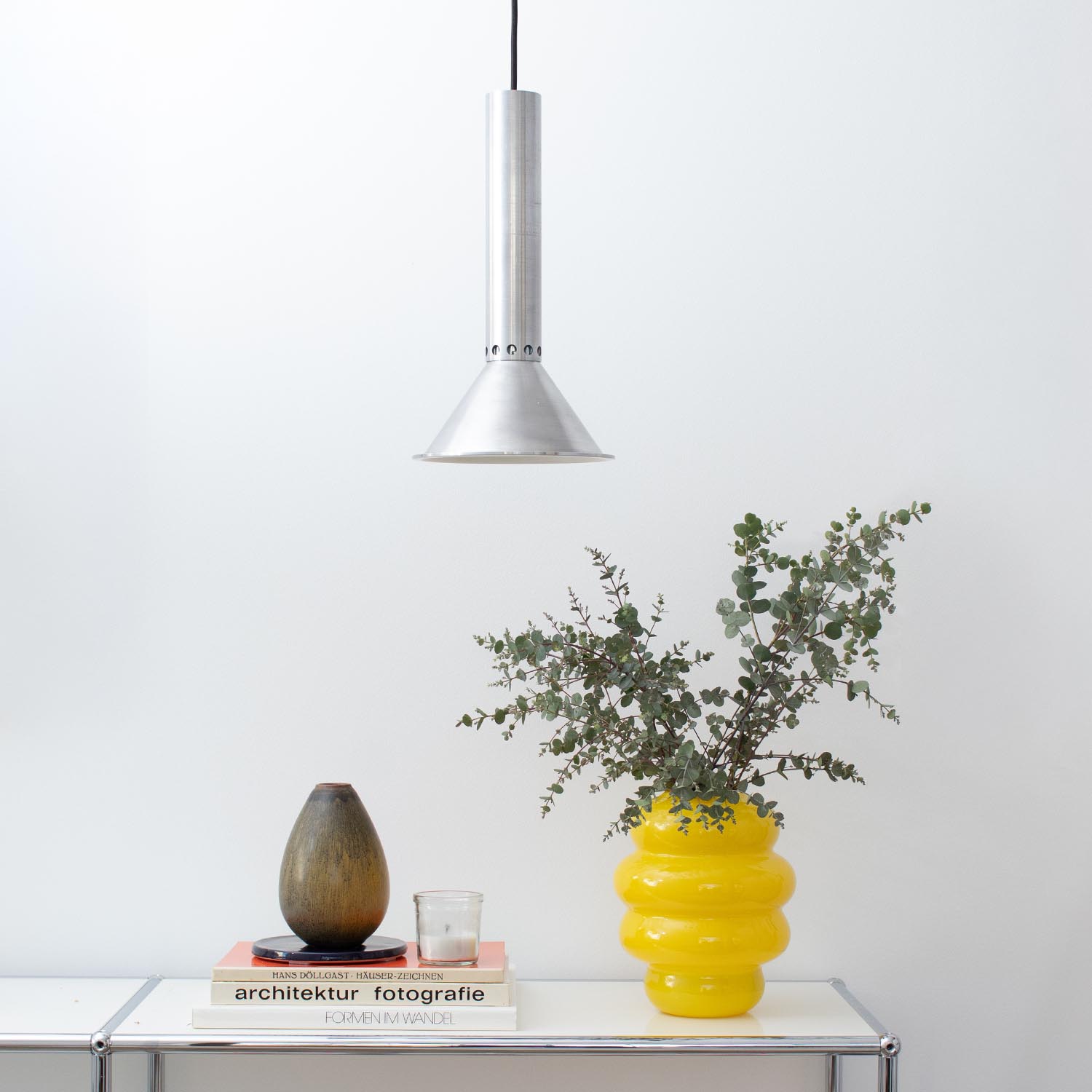 Vintage Spot-Pendelleuchte aus der Mitte des letzten Jahrhunderts. Cooles Space Age Design in gebürstetem Alu. Liebevoll restauriert schmücken diese Vintage-Lampen jetzt Küchentheken und Esszimmer, Flure und Wohnzimmer, Kinder- und Arbeitszimmer.