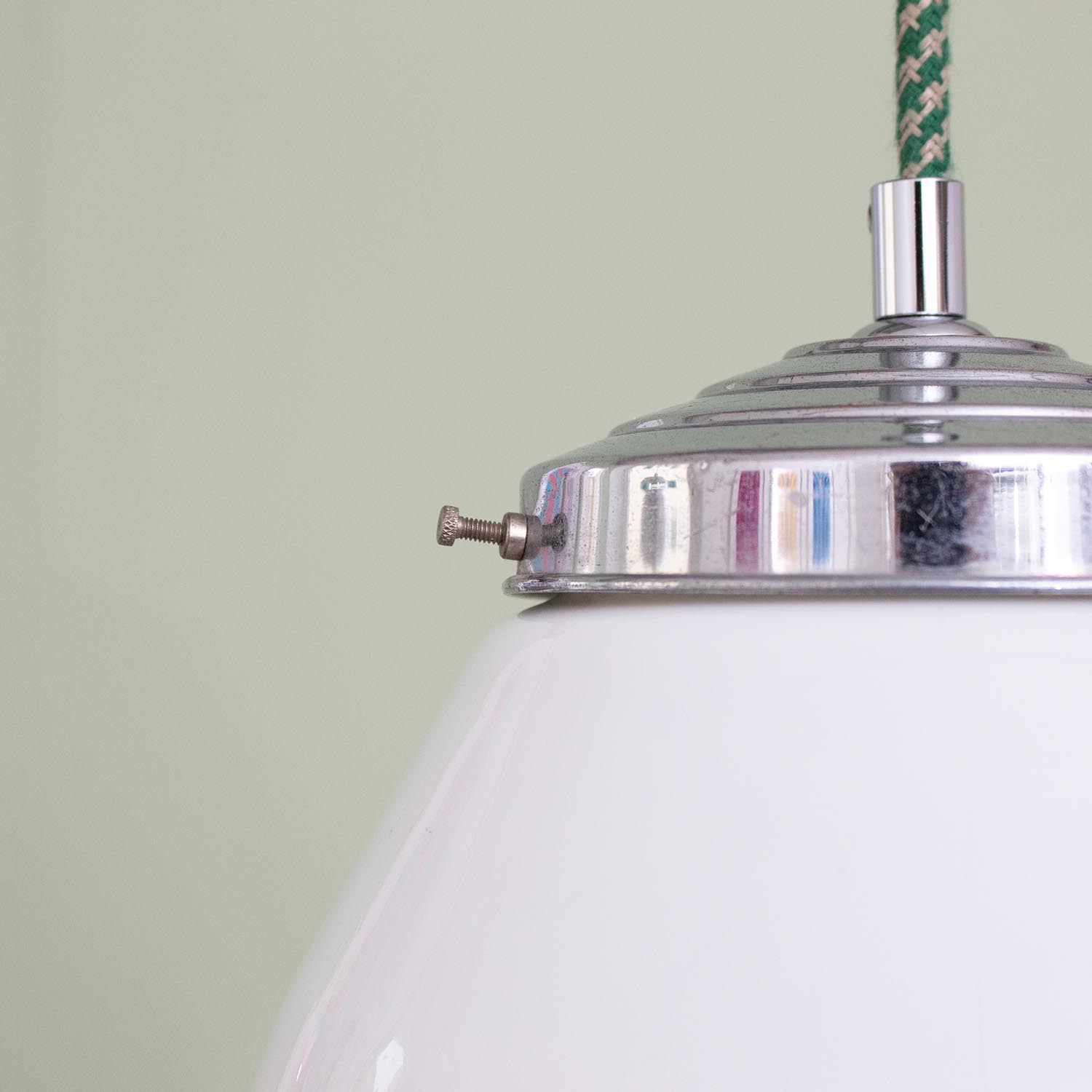 Kleine Opalglasleuchte für stilvolles Akzentlicht.Opalglas (auch Kryolithglas genannt) sieht aus wie milchiges oder satiniertes Glas, mit dem Unterschied, dass Opalglas mehr Glanz hat. Opalglas ist ein lichtdurchlässiges, aber nicht durchsichtiges Glas. Das durchscheinende Licht ist sanft und blendet nicht. Opalglas erreicht somit eine gleichmäßigere Lichtbrechung/Streuung als bei der Verwendung von normalem Glas. Mit Opalglas versehene Leuchten wurden bis ca. 1920 nur im industriellen Bereich eingesetzt. 1923 entwarfen die beiden Produktdesigner Wilhelm Wagenfeld und Carl Jakob Jucker in der Metallwerkstatt des Weimarer Bauhaus die erste Leuchte, die durch das verwendete Opalglas gestreutes Licht auch in den Wohnraum brachte. Die „Bauhaus-Leuchte“ ist heute besser bekannt als „Wagenfeld-Leuchte“ und zählt zu den Designklassikern des 20. Jahrhunderts. Seit diesem Zeitpunkt hat sich opales Glas – vor allem im späten Art déco - über viele Epochen und Stile hinweg bis heute als modernes und vielseitiges Glas im Leuchtendesign etabliert.