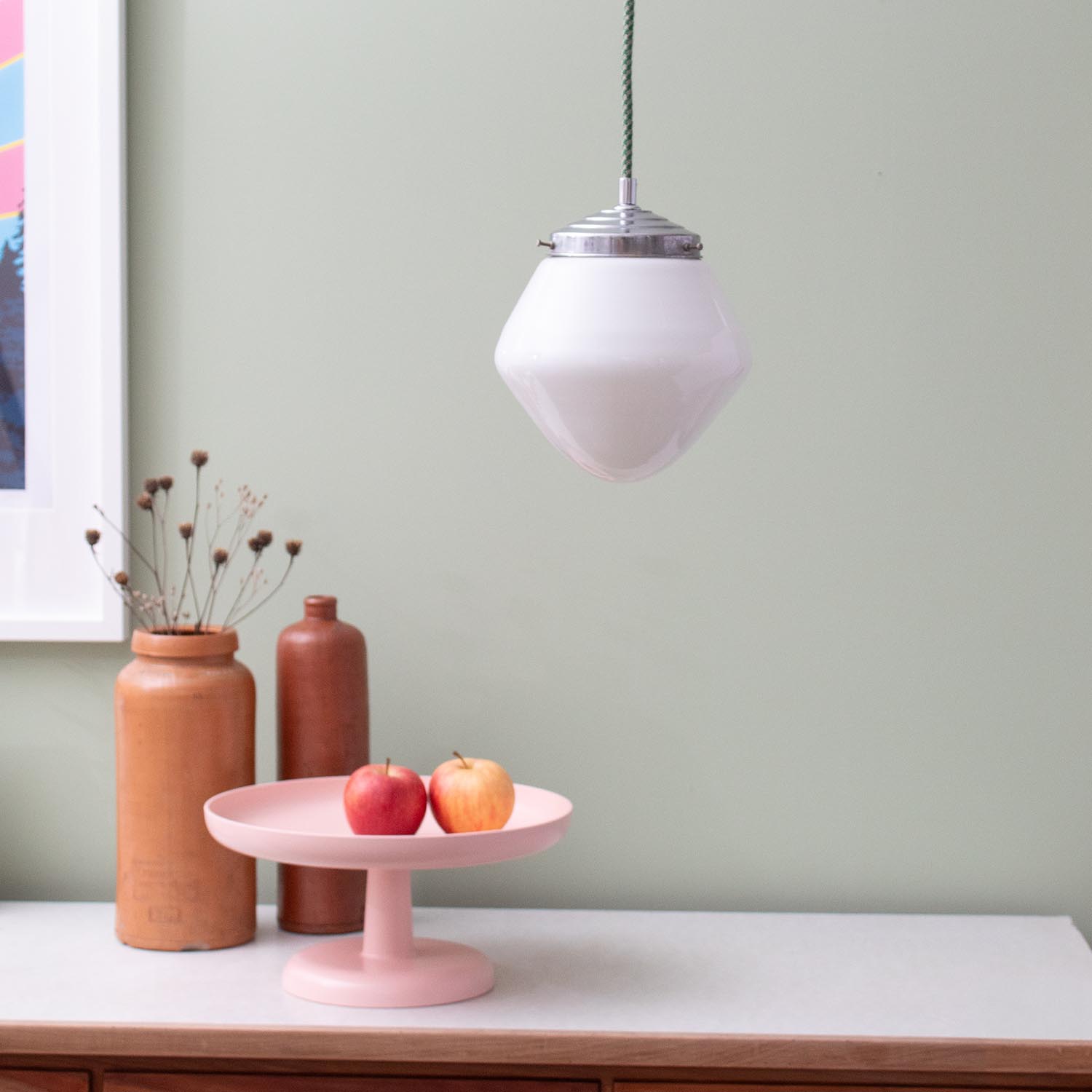 Produktinformationen "Vintage diamantförmige Opalglas Hängelampe Art-Déco Ø 17 cm"