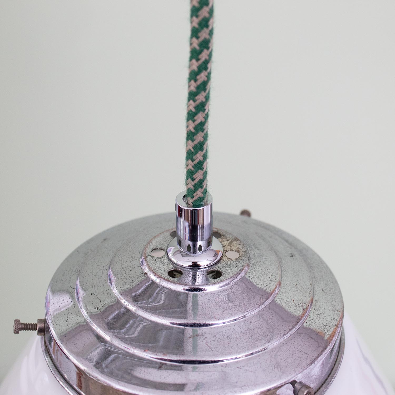 Die Lampenschirme werden sorgfältig gereinigt, dabei wird die Patina so gut es geht erhalten. Anschließend werden die Leuchten komplett neu elektrifiziert, so dass sie den aktuellen Sicherheitsstandards entsprechen.
