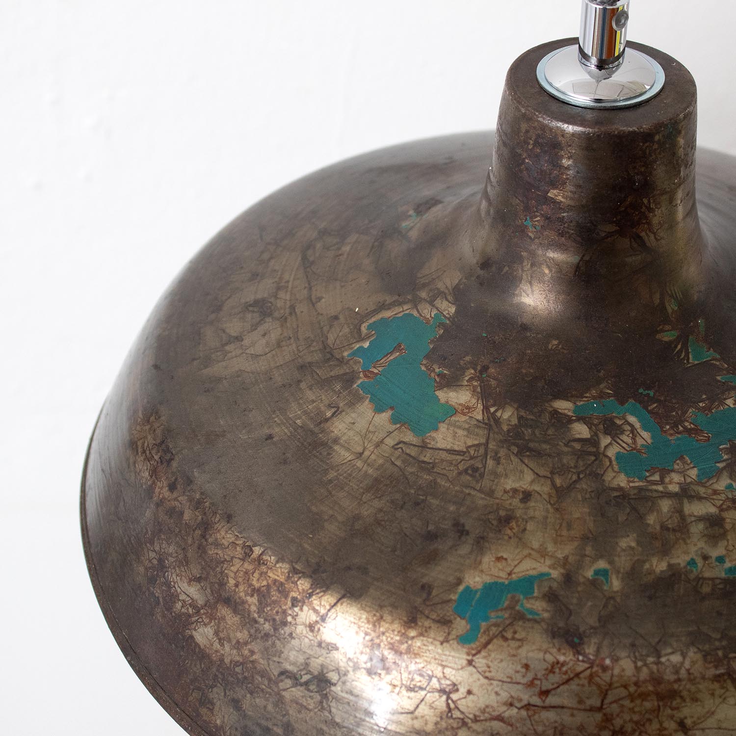 Produktinformationen "Metall graue Patina vintage Fabriklampe Roh-Stahl mit Farbresten Ø 31 cm"