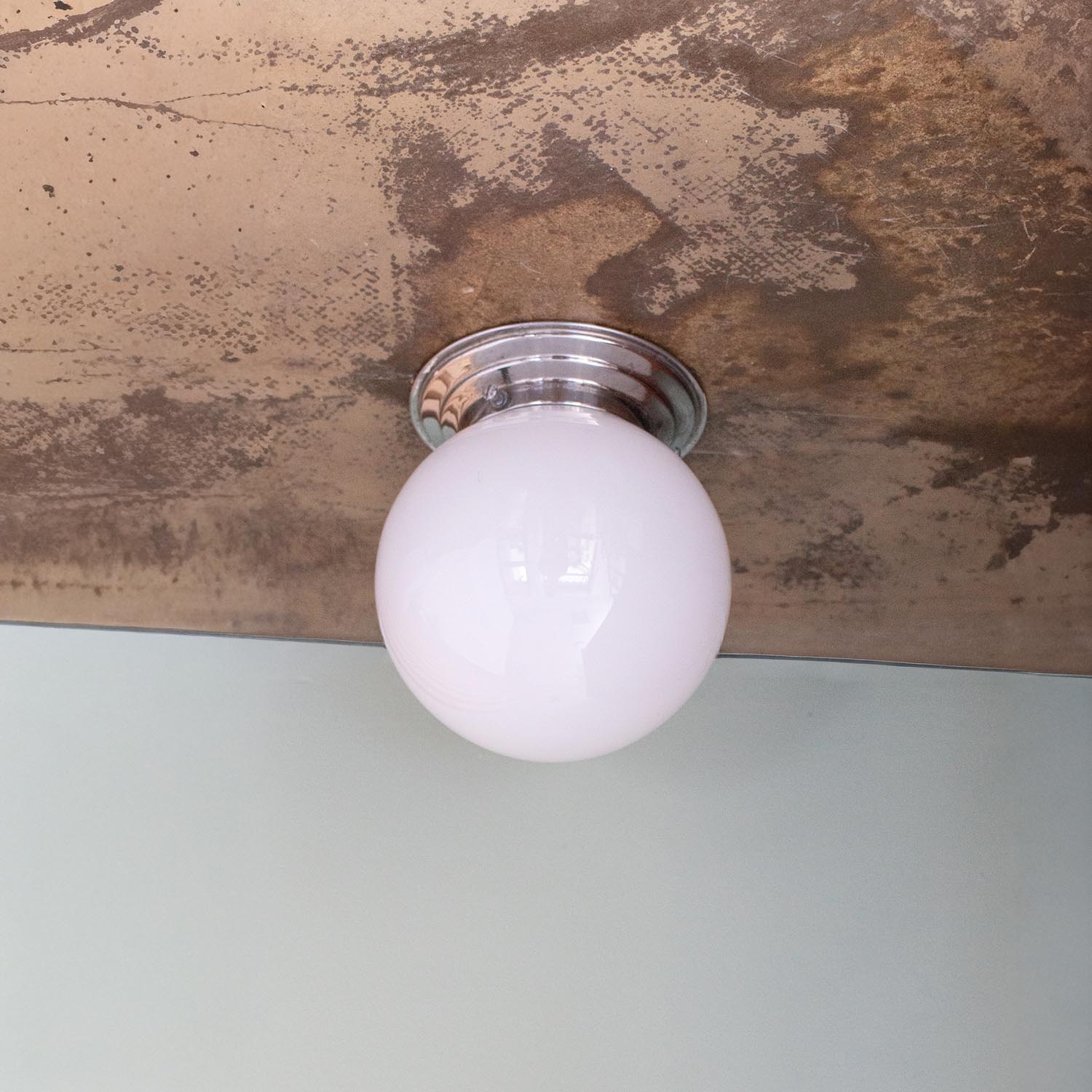 Produktinformationen "Alte Bauhaus Kugel Opalglas Deckenlampe aus Frankreich Ø 14 cm"