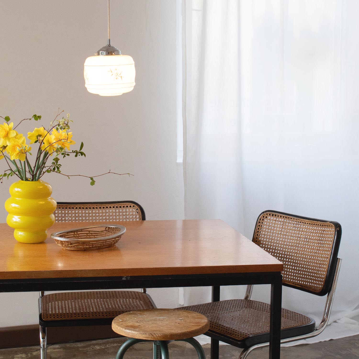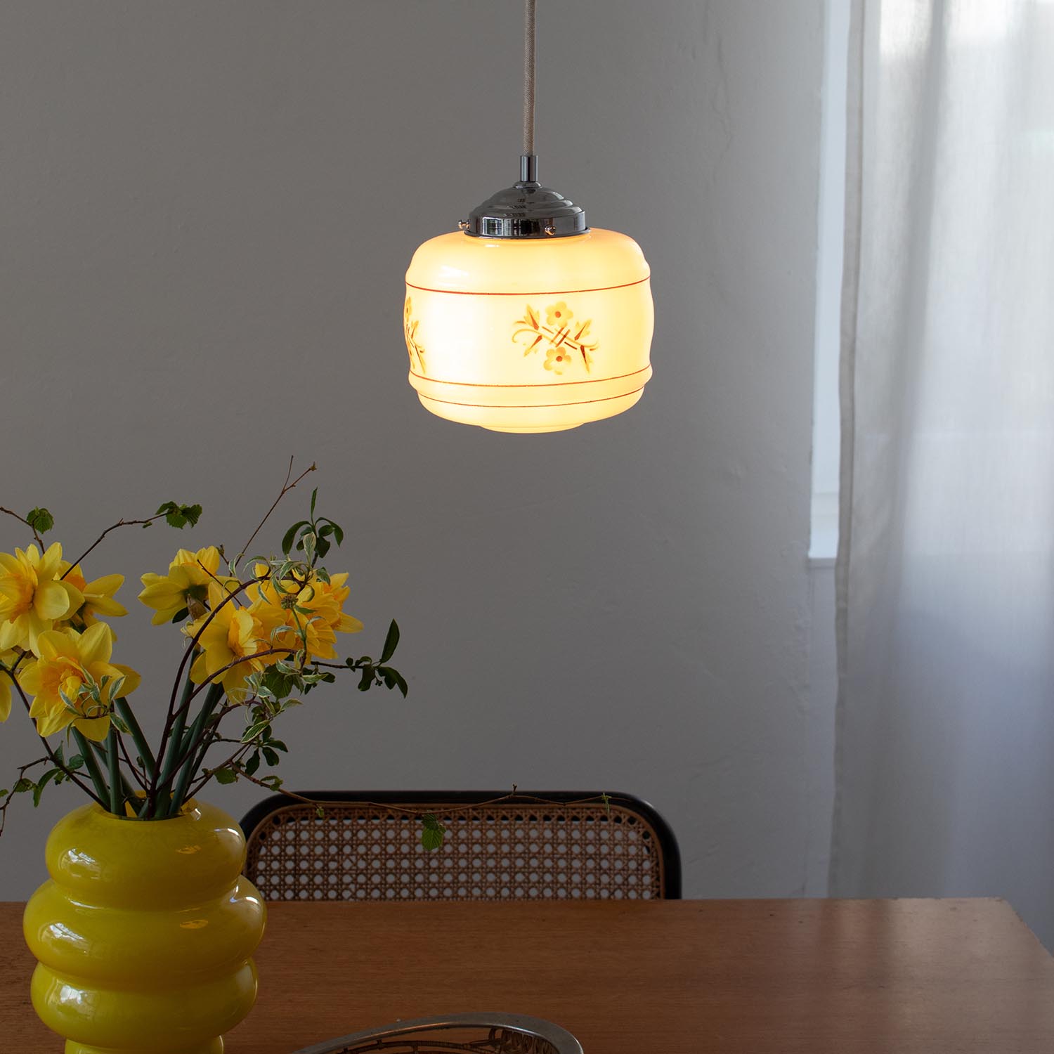 Angesagtes Spritzdekor mit schöner Patina aus den 1950er Jahren. Liebevoll restauriert schmücken diese Vintage-Lampen jetzt Küchen und Esszimmer, Flure und Wohnzimmer, Kinder- und Arbeitszimmer. So eine kleine Glasleuchte macht sich besonders gut als Spot oder Akzentlicht.
