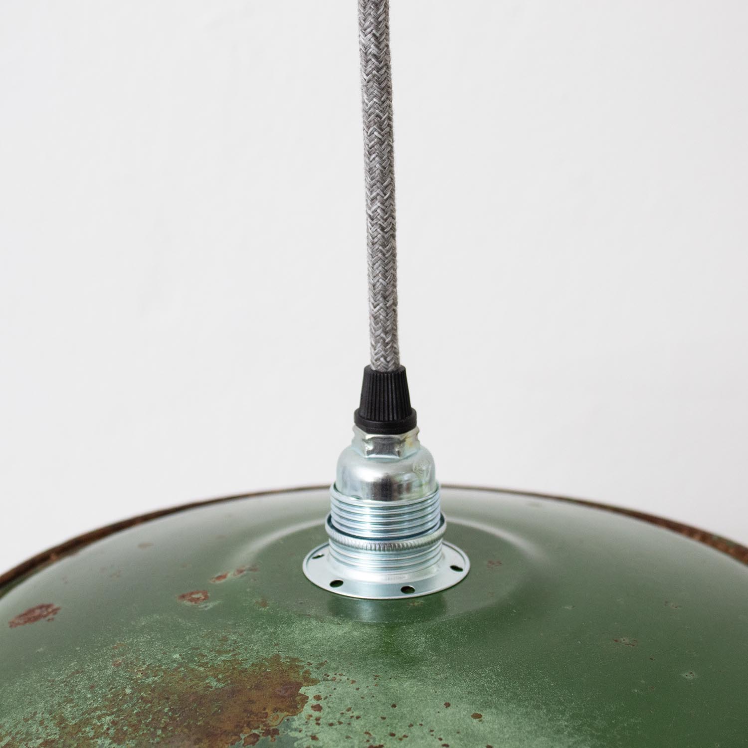 Produktinformationen "Flache grüne Emaille Hängelampe Ø 24 cm mit Patina aus Frankreich"