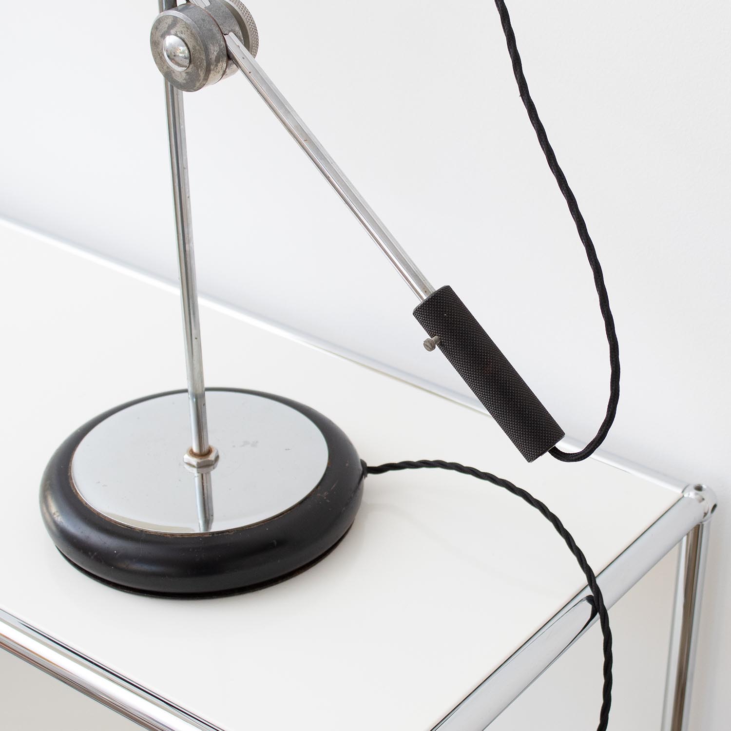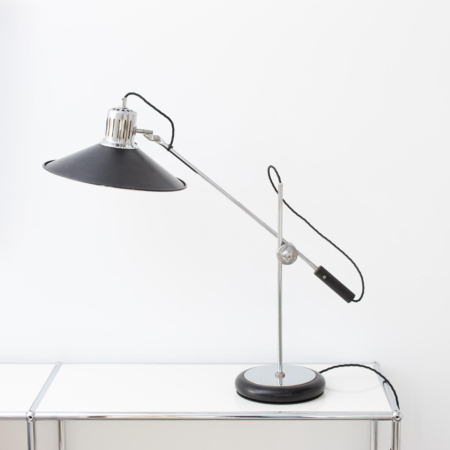 Produktinformationen "Große Aluminor Architektenlampe Tischlampe Schwarz/Chrom 1970er"