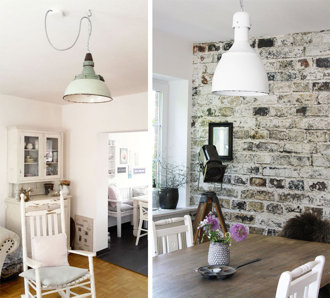 Und dass der Shabby Chic nicht ohne eine Fabrikleuchte mit Patina auskommt, versteht sich von selbst.