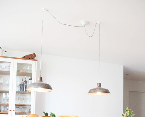 Sollte sich der Stromanschluss nicht direkt unter der Stromquelle befinden, kannst du so deine Lampe ebenfalls sicher aufhängen. Achte bei deiner Bestellung darauf ein längeres Kabel zu wählen, damit es bis zum Stromanschluss reicht.