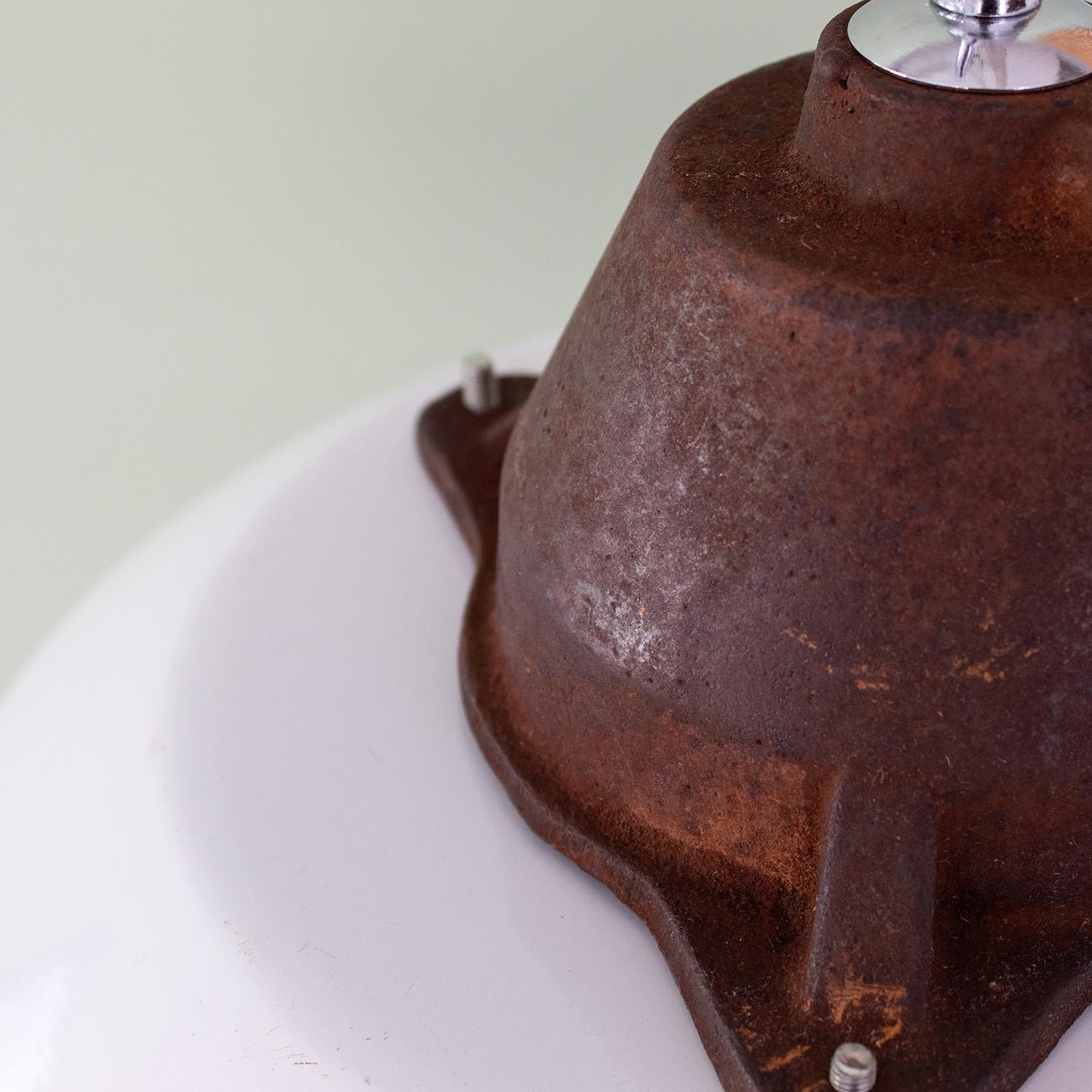 Produktinformationen "Alte weiße Industrielampe mit Patina Eisenkopf Ø 36 cm"