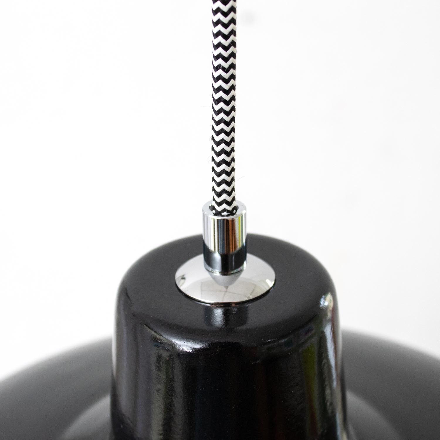 Um die Elektroinstallation an der Decke zu verdecken kannst du entweder einen weißen oder schwarzen Baldachin aus Hartplastik (Ø 65 mm – Höhe 67 mm) wählen - dieser ist im Preis enthalten. Weitere Baldachine (z. B. Porzellan- oder Abzweig-Baldachine) sind im Shop verfügbar. In unserem Magazin findest du eine reihe hilfreicher Tipps, auch gerade dann wenn der Stromanschluss nicht an der Stelle ist, an dem die Lampe hängen soll.