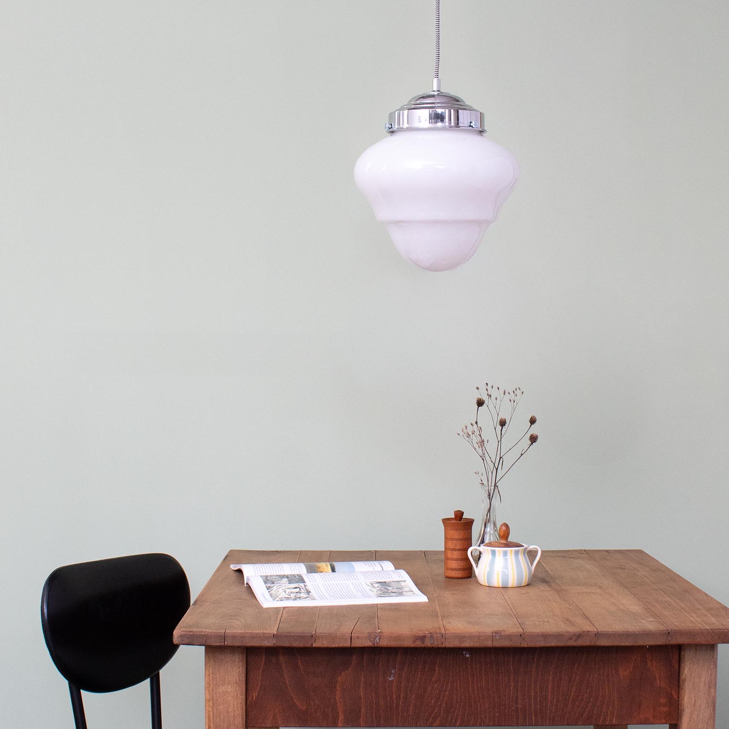 Das Opalglas (auch Kryolithglas genannt) sieht aus wie milchiges oder satiniertes Glas, mit dem Unterschied, dass Opalglas mehr Glanz hat. Opalglas ist ein lichtdurchlässiges, aber nicht durchsichtiges Glas. Das durchscheinende Licht ist sanft und blendet nicht. Opalglas erreicht somit eine gleichmäßigere Lichtbrechung/Streuung als bei der Verwendung von normalem Glas. Mit Opalglas versehene Leuchten wurden bis ca. 1920 nur im industriellen Bereich eingesetzt. 1923 entwarfen die beiden Produktdesigner Wilhelm Wagenfeld und Carl Jakob Jucker in der Metallwerkstatt des Weimarer Bauhaus die erste Leuchte, die durch das verwendete Opalglas gestreutes Licht auch in den Wohnraum brachte. Die „Bauhaus-Leuchte“ ist heute besser bekannt als „Wagenfeld-Leuchte“ und zählt zu den Designklassikern des 20. Jahrhunderts Seit diesem Zeitpunkt hat sich opales Glas – vor allem im späten Art déco - über viele Epochen und Stile hinweg bis heute als modernes und vielseitiges Glas im Leuchtendesign etabliert.
