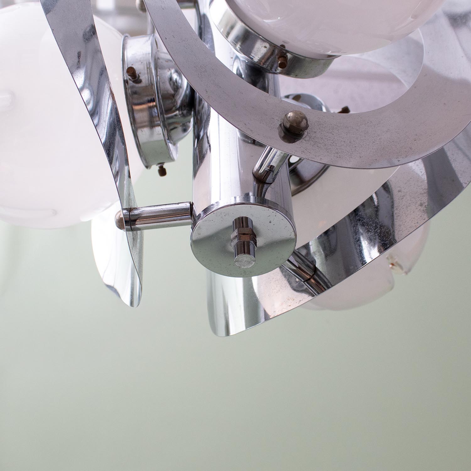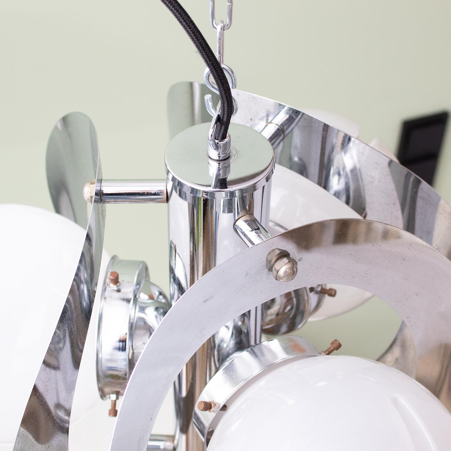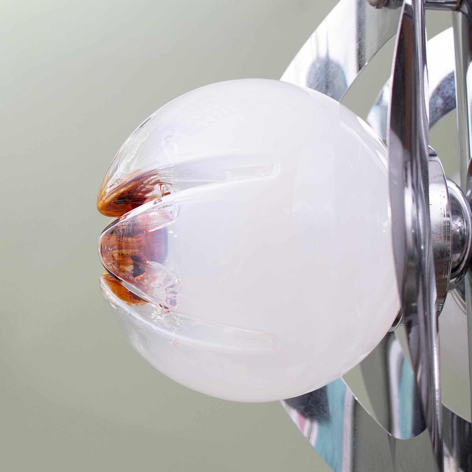 Produktinformationen "Stolzer midcentury 3-flammiger Murano Mezzega Glaskugel Leuchter Ø 38 cm"