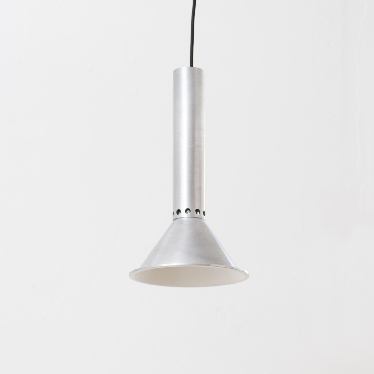 Vintage Spot-Pendelleuchte aus der Mitte des letzten Jahrhunderts. Cooles Space Age Design in gebürstetem Alu. Liebevoll restauriert schmücken diese Vintage-Lampen jetzt Küchentheken und Esszimmer, Flure und Wohnzimmer, Kinder- und Arbeitszimmer.