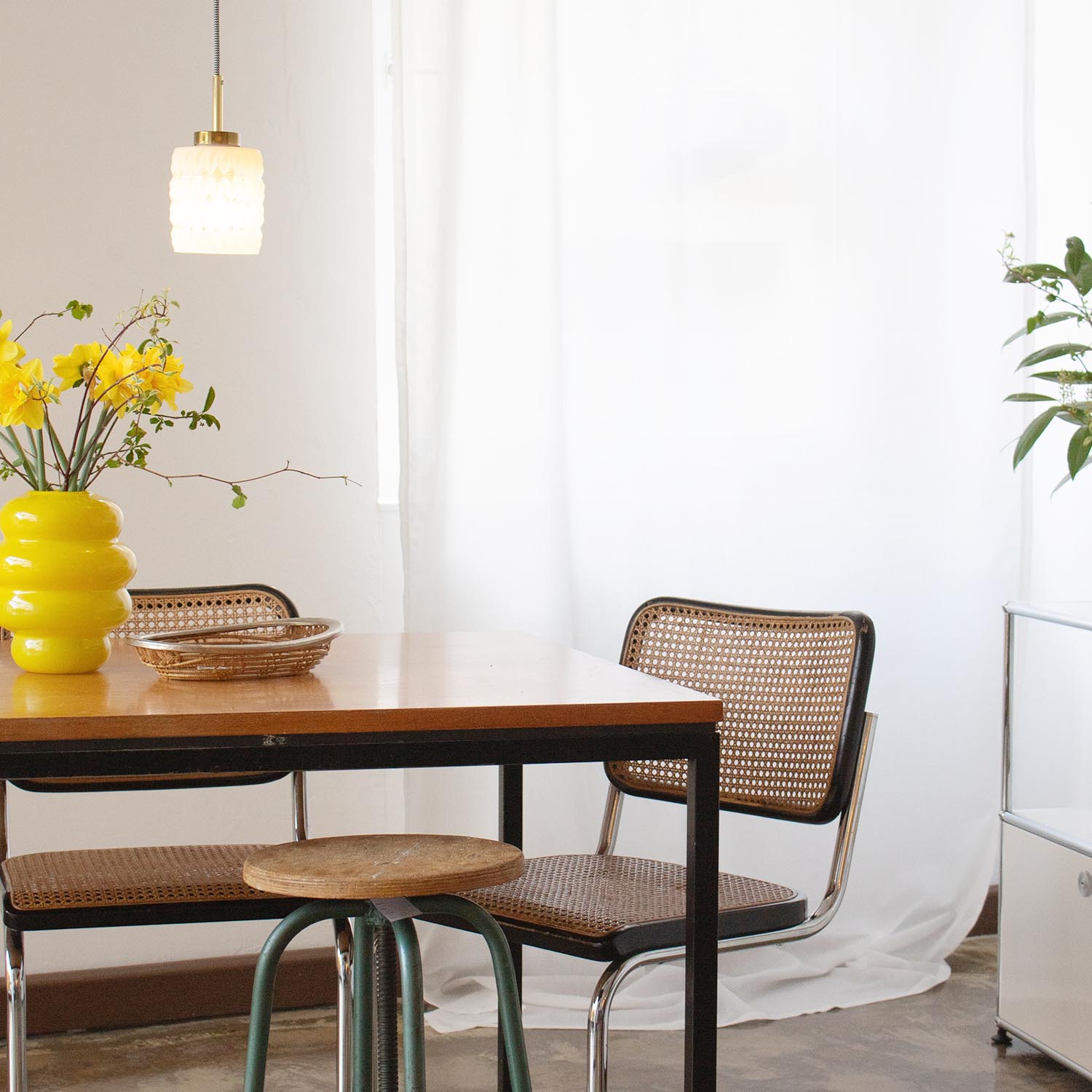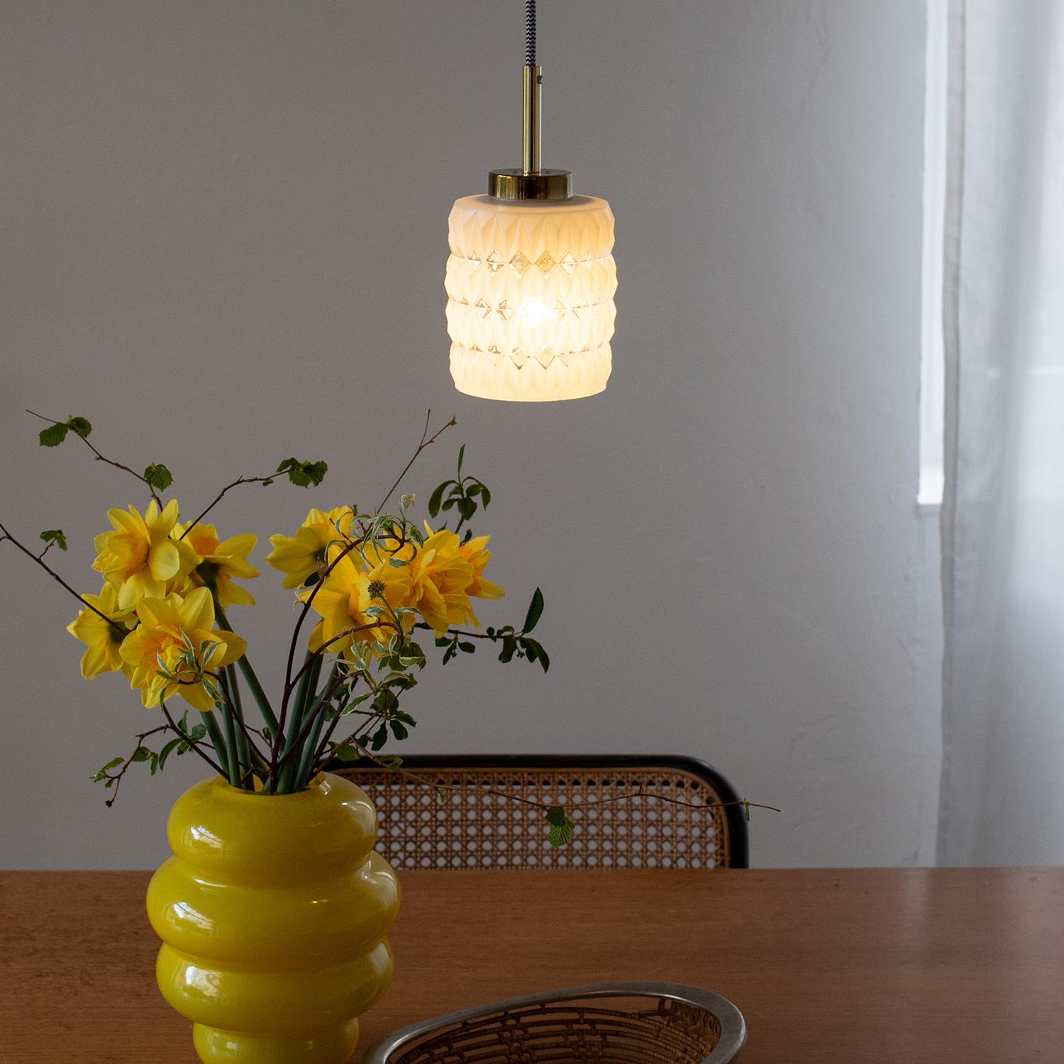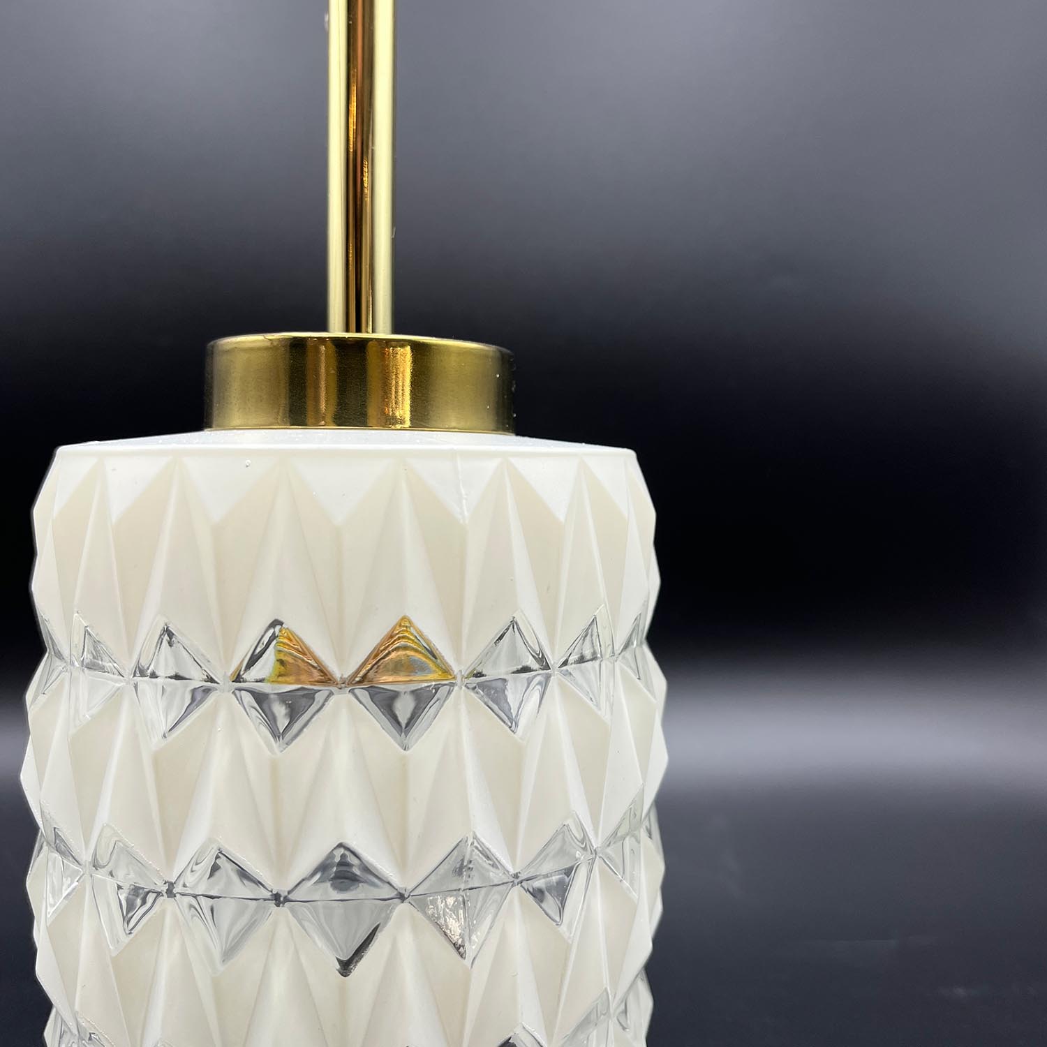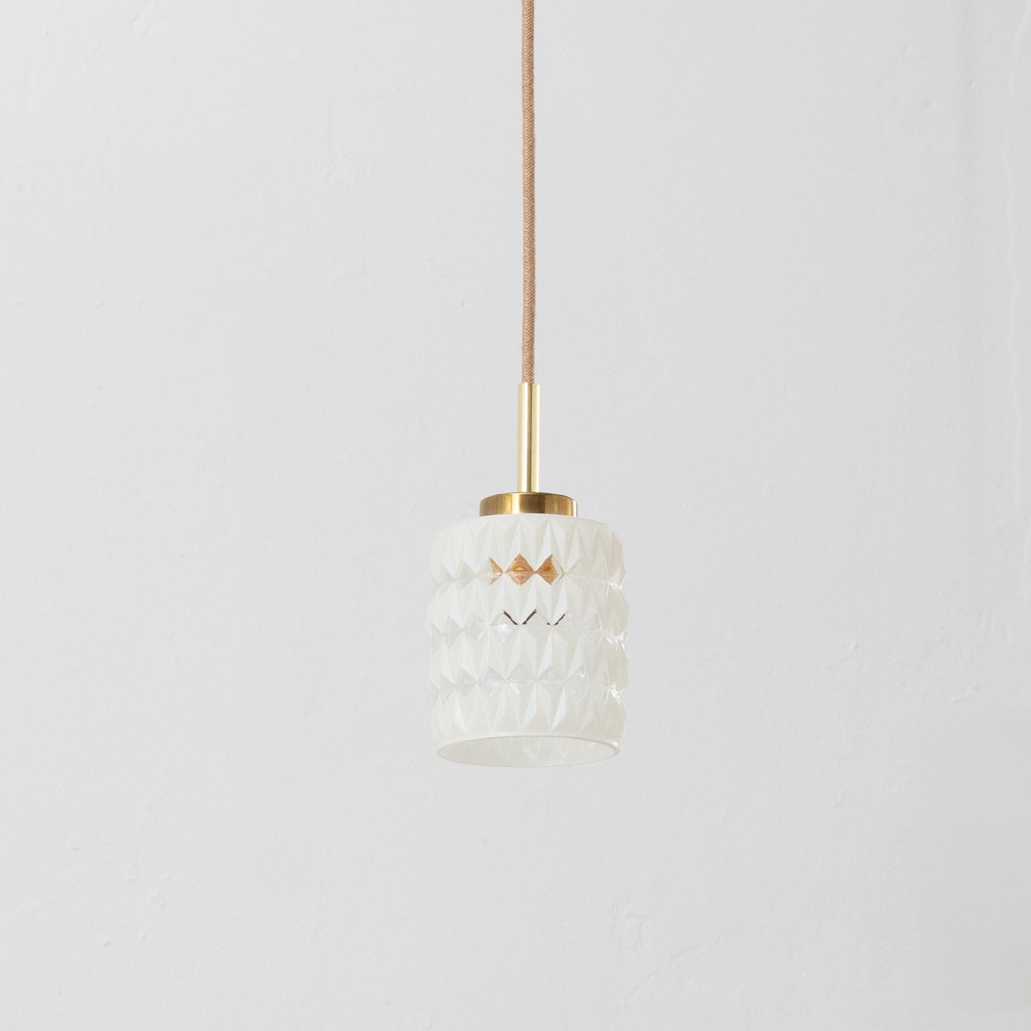 Produktinformationen "Vintage midcentury Pendelleuchte Kristallglas Weiß-Messing Ø 11 cm"