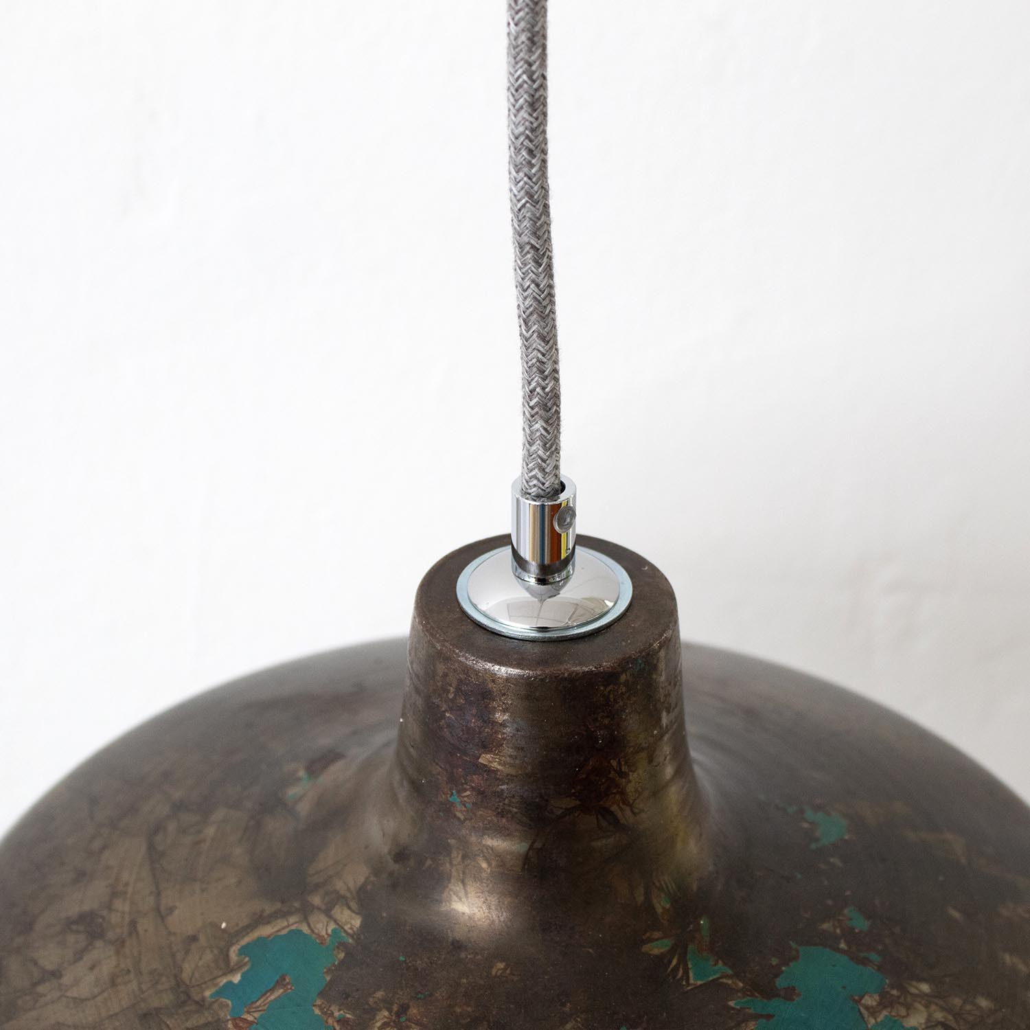 Produktinformationen "Metall graue Patina vintage Fabriklampe Roh-Stahl mit Farbresten Ø 31 cm"